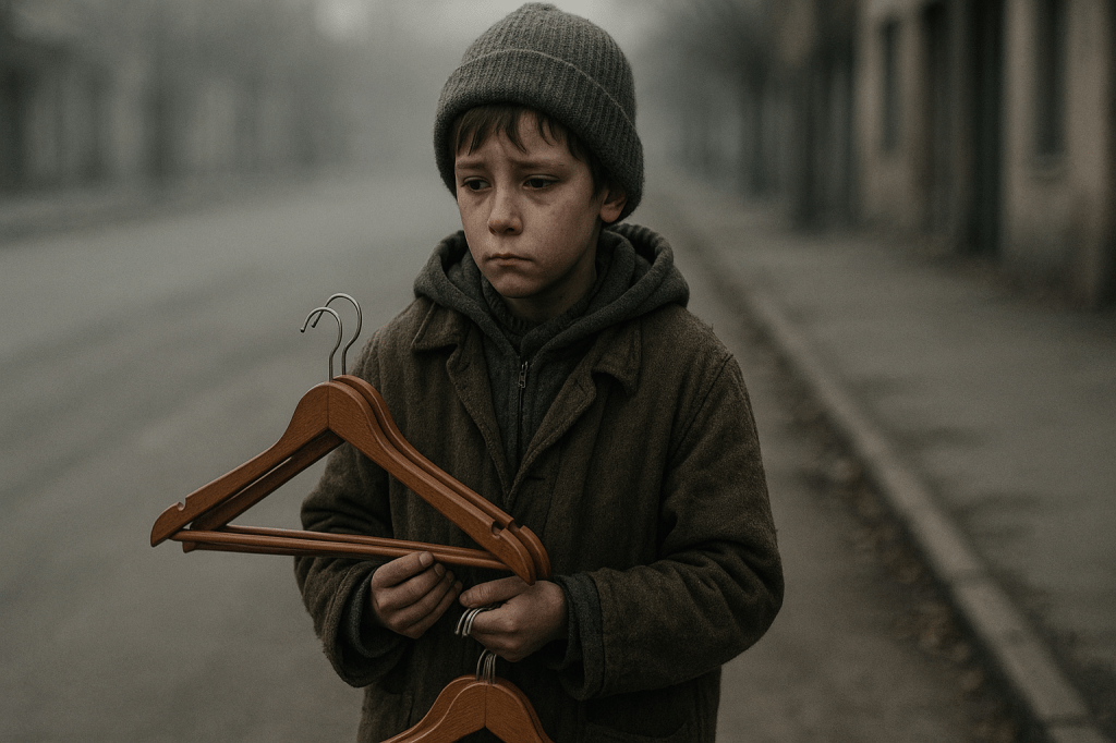 Pe străzile orașului nu vînd umerașe doar copiii din Cîmpeni. O familie întreagă de la Vadu Crișului le face concurență. I-am cunoscut în 1993. Copiii de la Vad au crescut. Frumoși, rumeni în obraji, pistruiați și sfioși, au 10 ani vechime în muncă. Pe al mai mic dintre ei l-am întrebat atunci ce-și doreste cel mai mult. „O mașină”, mi-a răspuns copilul. L-am cautat acum să-l vad cum i-au mers afacerile și daca i-au dispărut pistruii. „Mai vrei o mașină?” „Sigur, o să mă fac șofer!” Copilul care a bătut străzile cu picioarele copilăriei lui, purtînd umerașele în spate, în toți acești ani, a visat la mașina care să-l poarte pe roți, adăpostit de frig și ploaie. Ei știu ce vor.