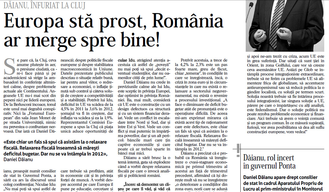 Am scris atunci un articol (vezi facsimilul), recunosc, foarte derutată de comportamentul lui Dăianu. Se vedea pe el frustrarea.