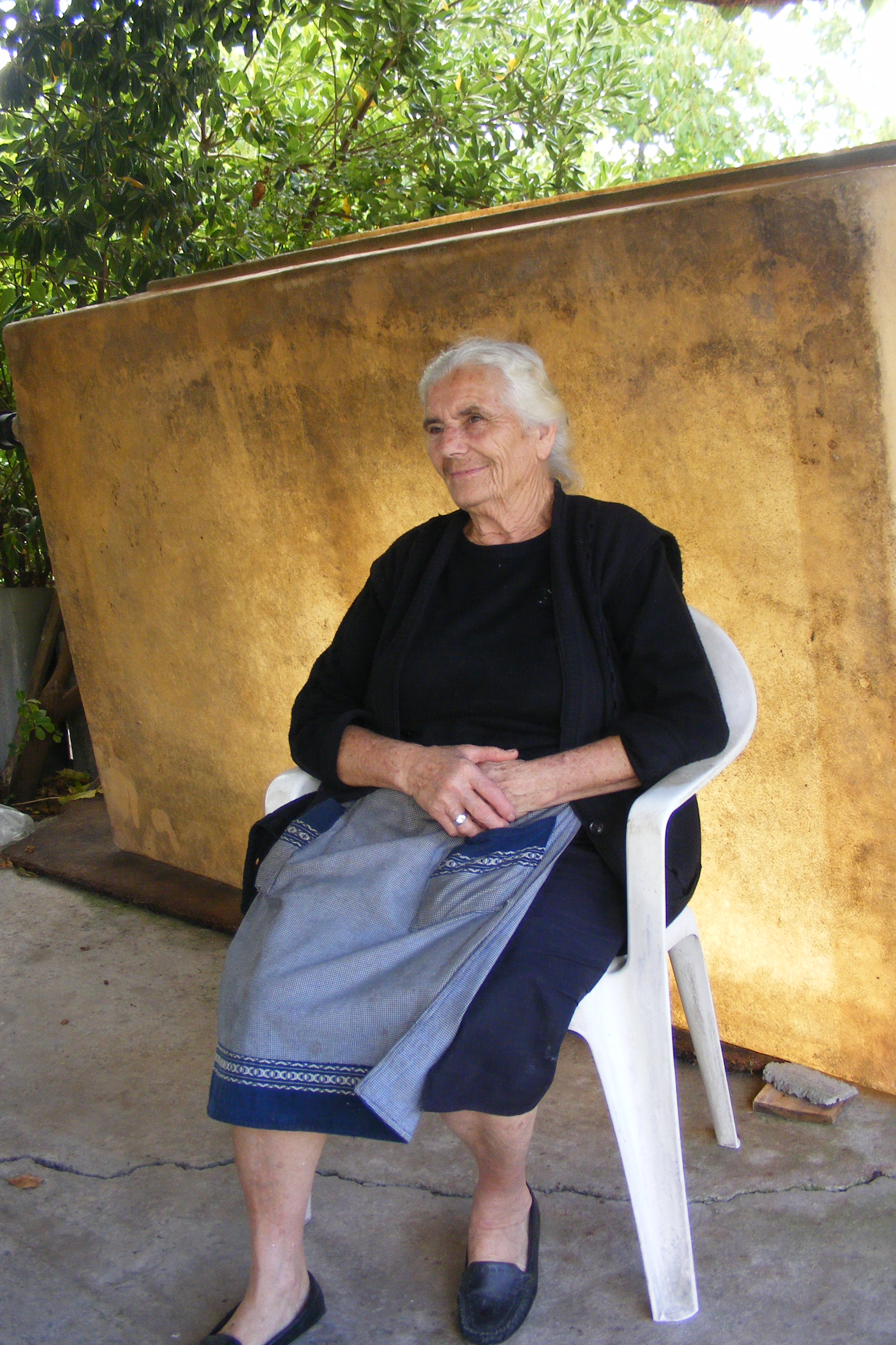 Ne-am oprit într-o după amiază de toamnă să bem o cafea, pentru că stătea sub dudul de la poartă la o masă, am înțeles că ne aștepta. Pe masă avea o cană de apă și nuci, am presupus că ne poate face și o cafea. Așa a fost.