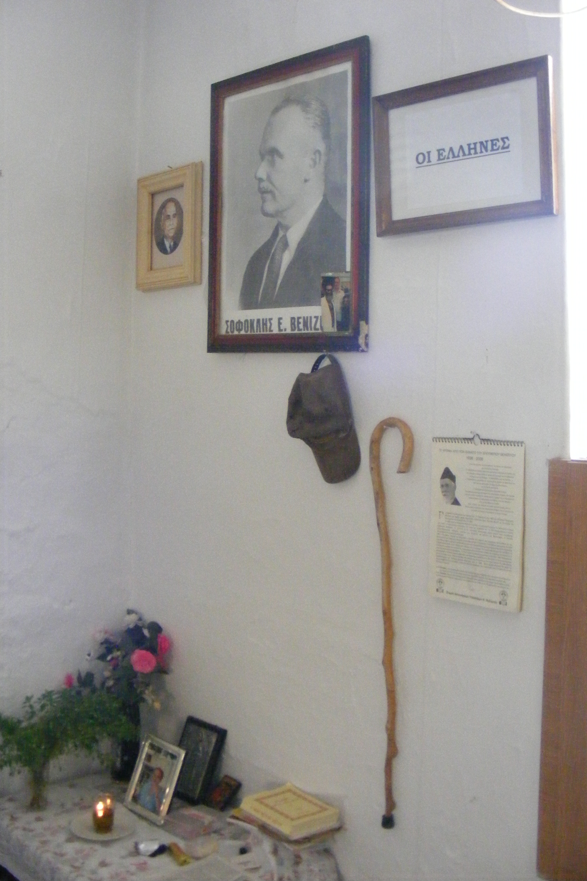 Pălăria lui e centrul micului altar. Bastonul şi cîteva fotografii cu prietenii. Un bărbat grec foarte frumos. Demn, mustăciuos şi cu ochi pătrunzători. Un bărbat adevărat. Pe măsuţă, sub tablou o vază cu flori de toamnă şi o candelă aprinsă. În tablou e Sofocle, slăbiciunea politică a bărbatului ei. Ioan a murit. Pe el îl iubeşte încă femeia în negru care îmi prepară cafeaua. O privesc lung. Această bucătărie exprimă cu fidelitate spiritul grec, ce are şi ce simte această lume. Măsline, rachiu, taverne, amintiri, vise şi multă dragoste. Aceşti oameni îşi venerează iubirile şi după moarte. Pentru iubire ei au pornit un război.