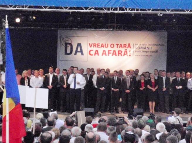 Prima sa descindere în teritoriu a fost în Transilvania, în Sălaj. Trebuie să vă spun că, la intrarea sa în sală, democrat-liberalii l-au întâmpinat cu entuziasm. Culorile folosite de democrat-liberali au fost verde şi albastru, iar sigla PDL lipsea cu desăvârşire, la fel cum a lipsit numele vreunui lider al PDL de pe afişe sau din discursuri.